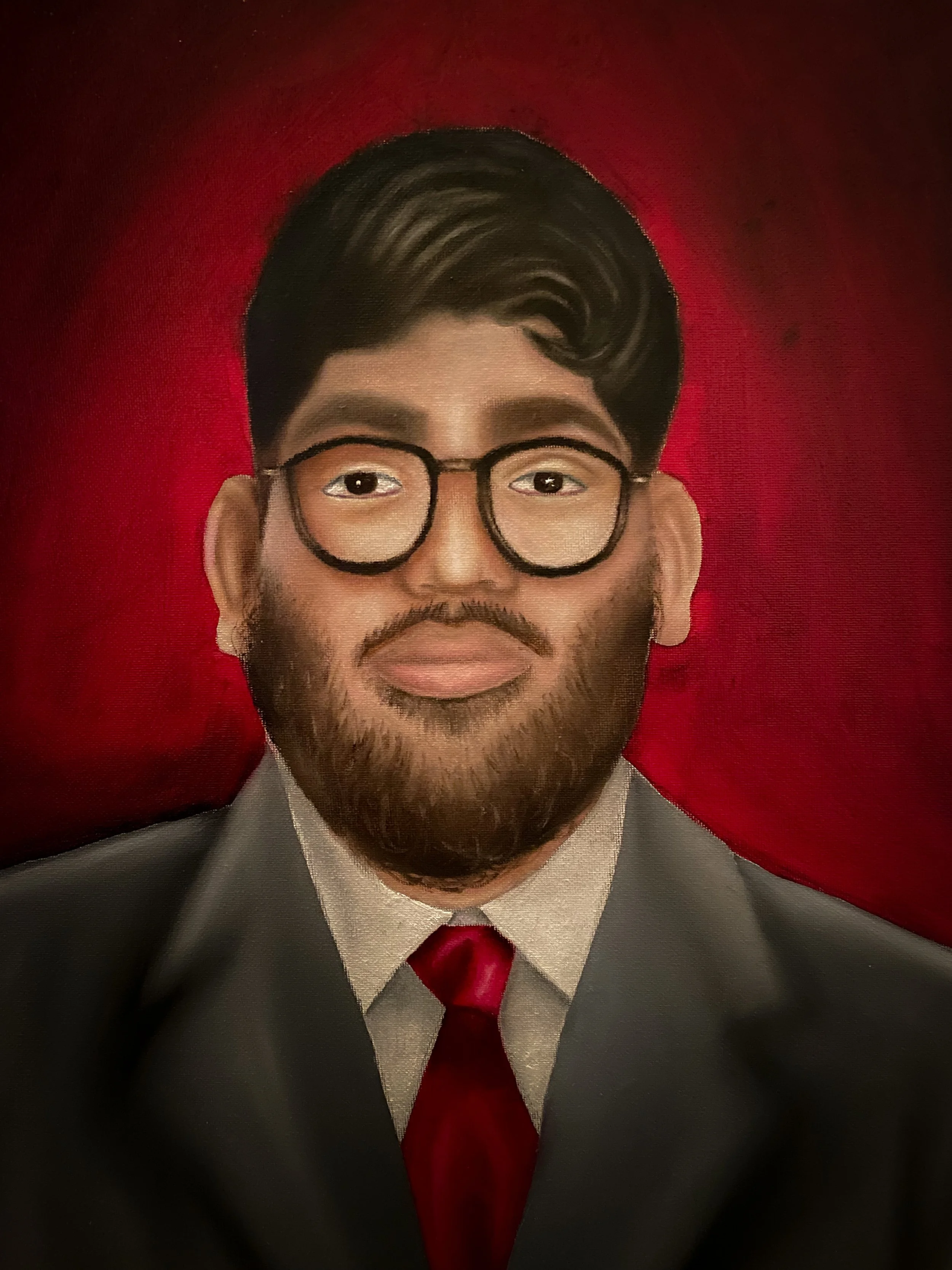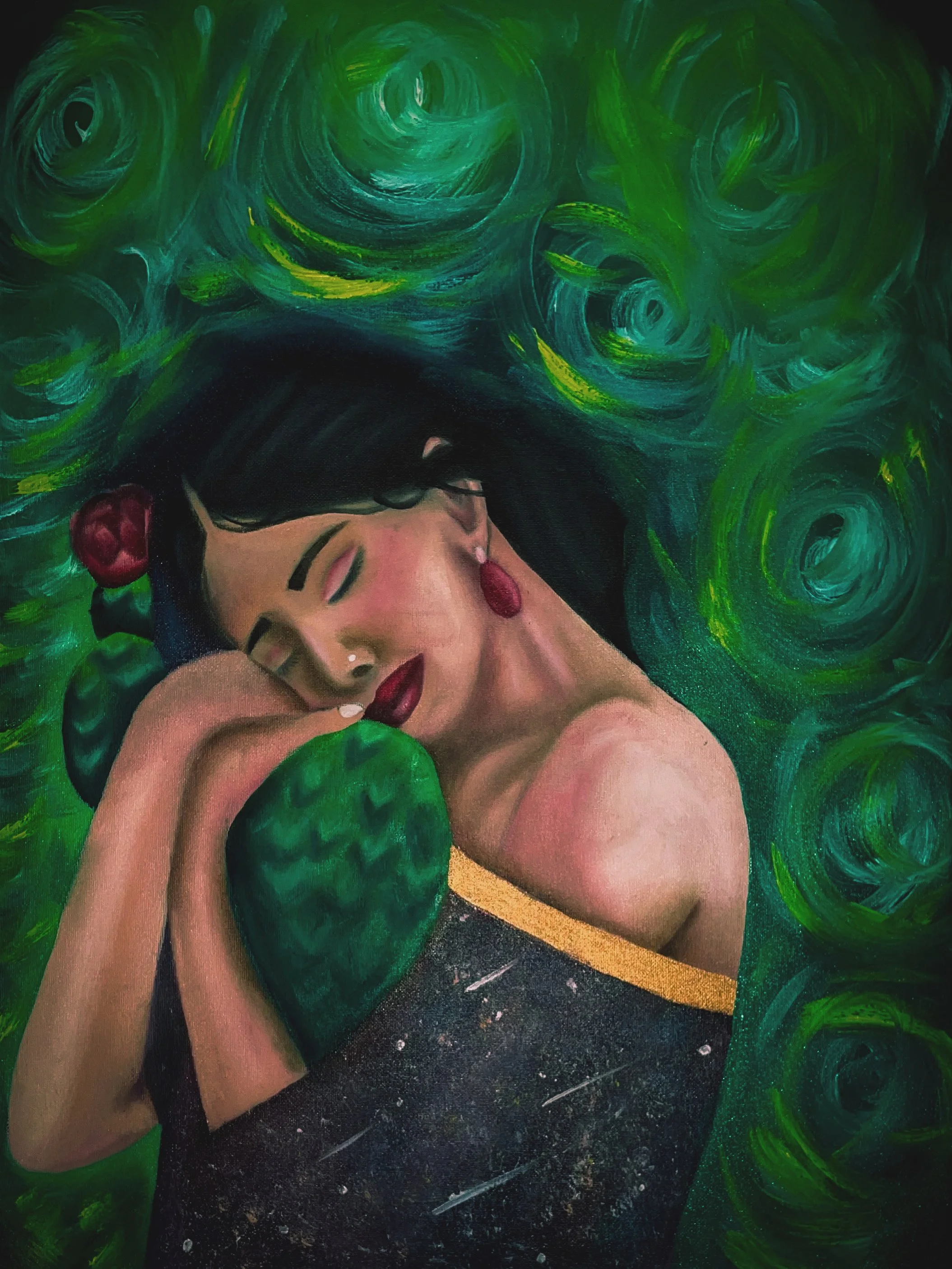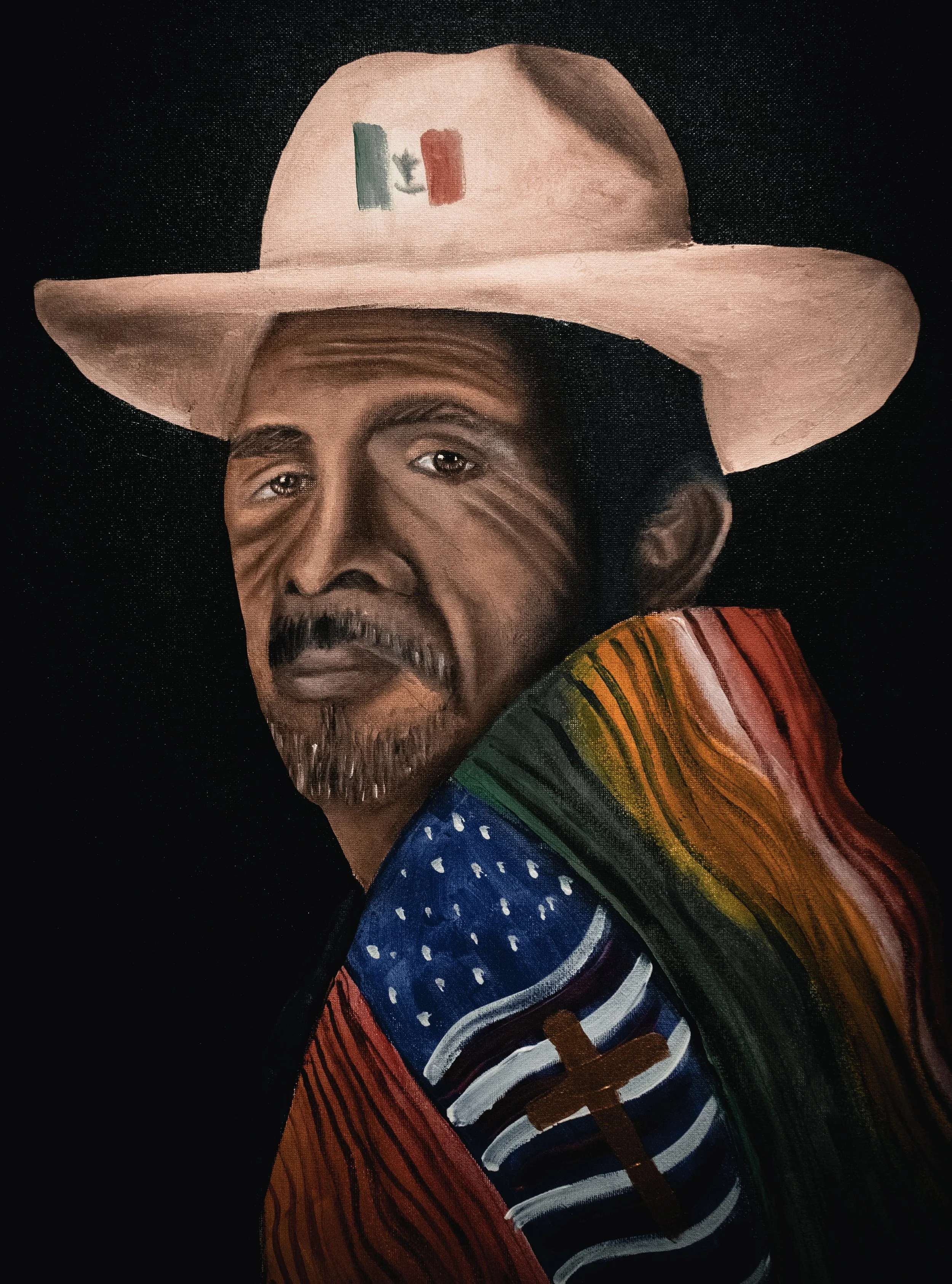 This painting portrays an Aztec man as a tribute to my ancestry and cultural heritage. As a descendant of the Aztec people, this work is deeply personal to me. It serves not only as a representation of history, but as a reclamation of identity, pride, and resilience.